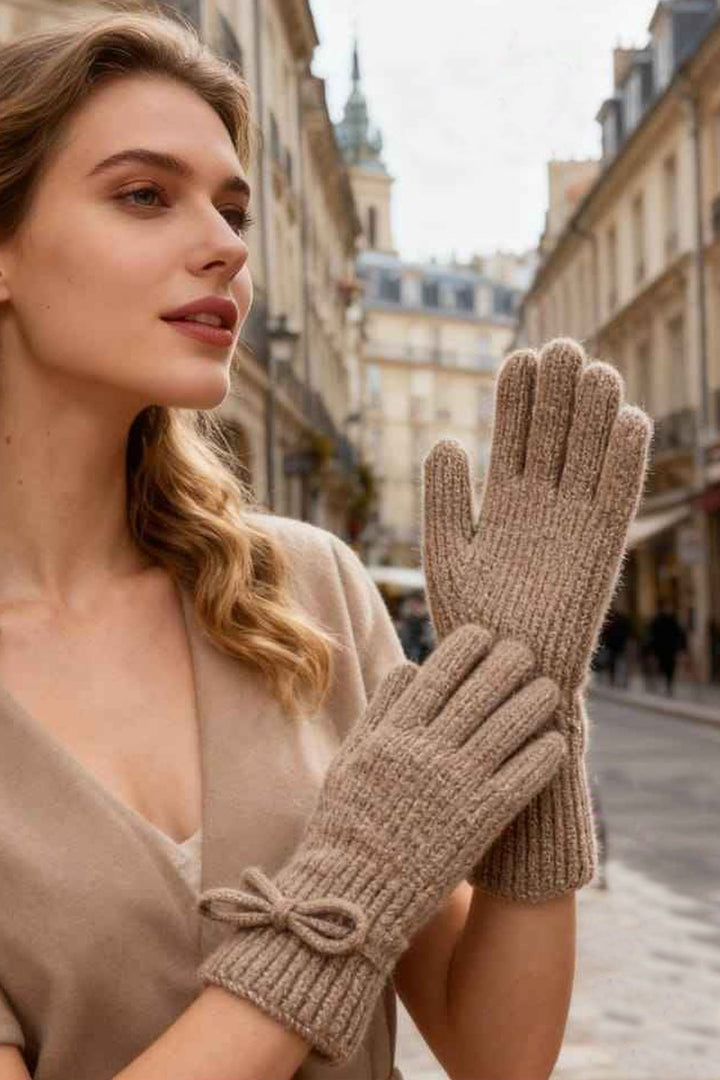 Stay warm in style with these elegant women’s winter knit gloves, designed for ultimate comfort during cold weather. Crafted from a soft, cozy knit fabric, these gloves provide exceptional warmth while maintaining a lightweight and breathable feel. The ribbed knit texture adds a touch of sophistication, perfectly complementing casual and semi-formal winter outfits. A charming bow detail at the wrist enhances the feminine, stylish look—ideal for women who love minimal yet fashionable accessories.