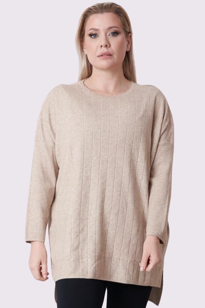 Embrace effortless style with our Plain Long Sleeve Crew Neck Top for Women. Designed in a relaxed, loose fit and available in plus sizes, it's perfect for casual autumn and winter days. The dipped hem and side split add a trendy touch to this cozy essential.