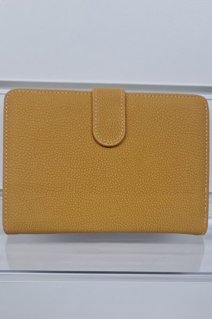 Add a touch of modern elegance to your accessories collection with this sleek mustard yellow women's clutch wallet. Crafted from high-quality faux leather with a subtly textured grain finish, this wallet exudes sophistication while being cruelty-free. The snap-button tab ensures secure closure, making it perfect for everyday use or special outings. Inside, it features a thoughtfully designed layout with multiple card slots, compartments for cash, and space for receipts or bills—keeping everything organized without the bulk. The rich mustard hue adds a pop of color, making this wallet a chic statement piece that pairs effortlessly with casual or formal ensembles. Whether you're running errands or heading out for the evening, this wallet keeps your essentials secure in style.