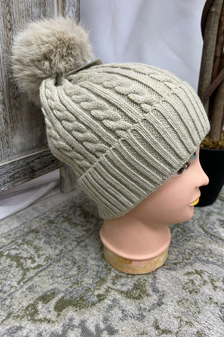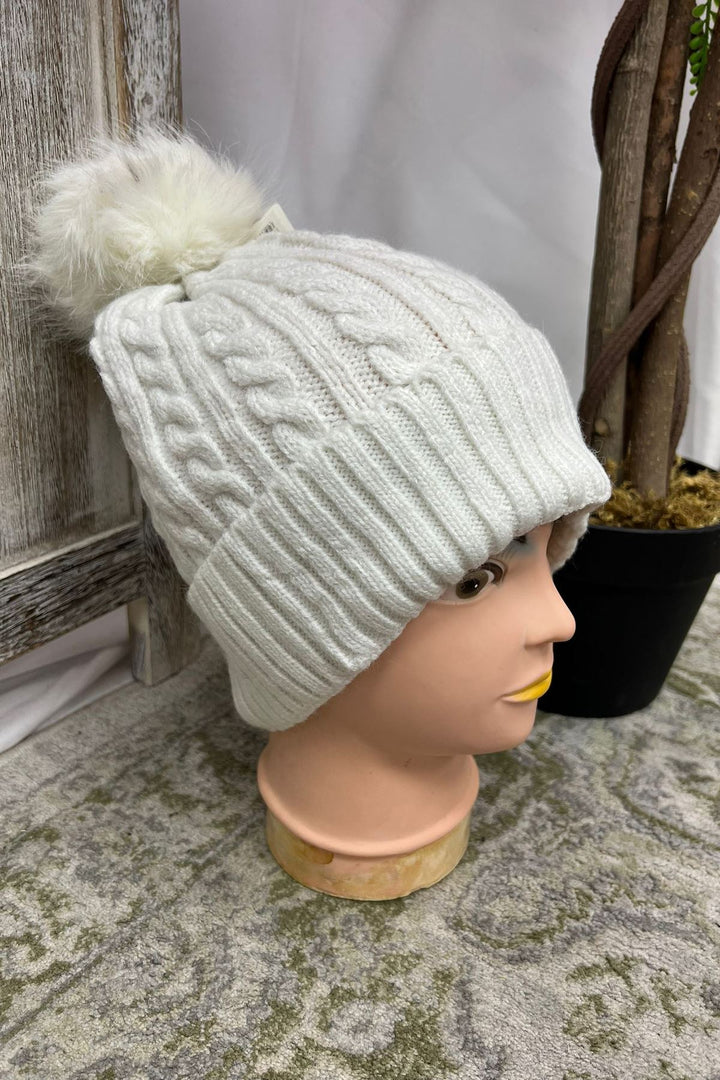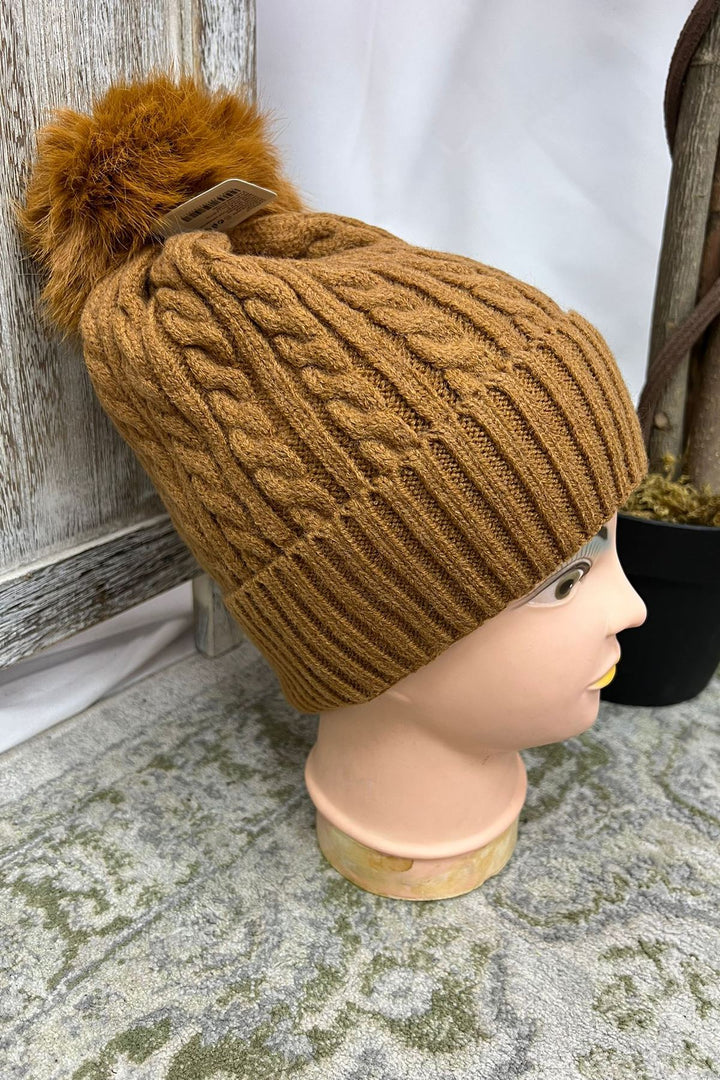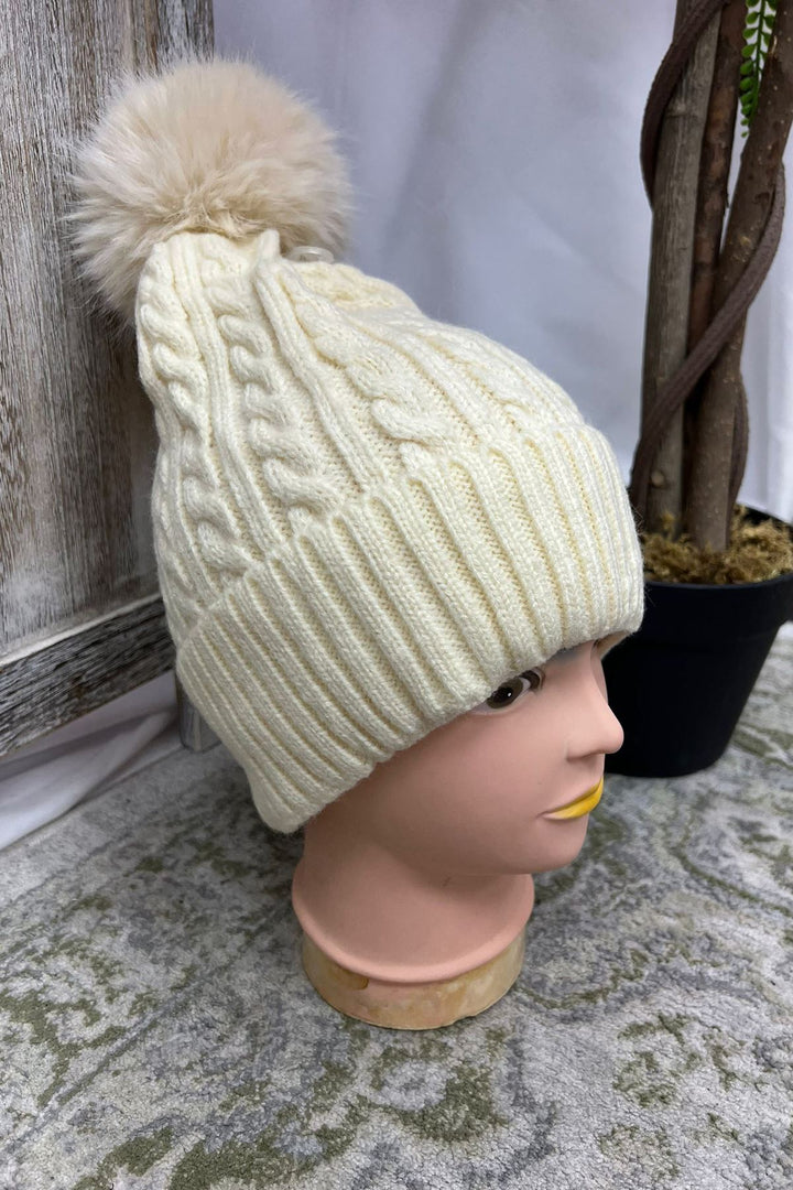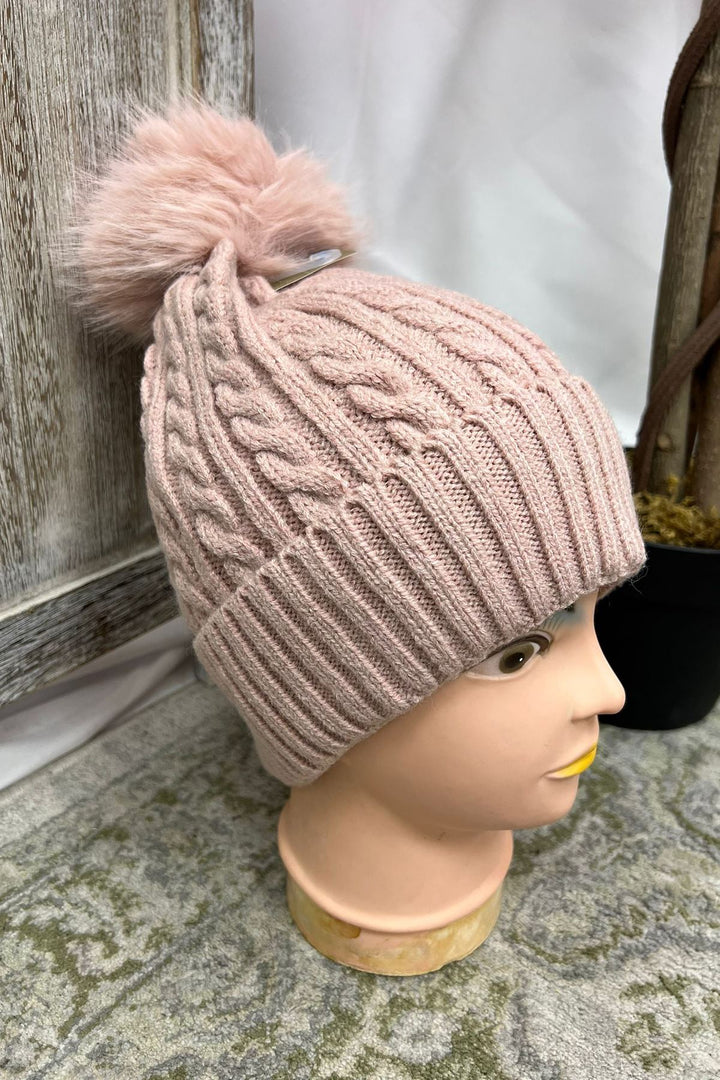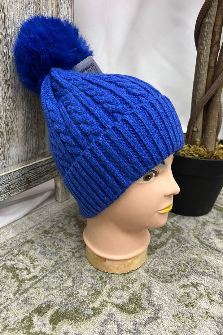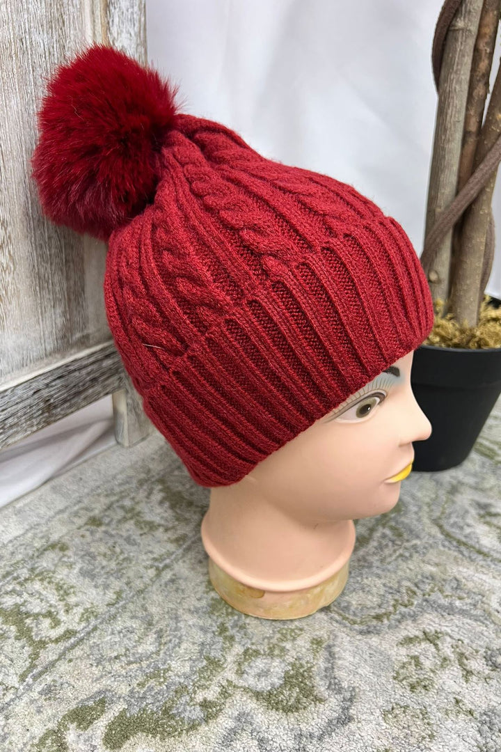 Stay warm and stylish all winter long with this cozy cable knit beanie in a rich purple hue. Featuring a classic chunky knit design and topped with a plush faux fur pom-pom, this hat adds both function and flair to your cold-weather wardrobe. The thick ribbed cuff provides a snug yet comfortable fit that retains heat, while the vibrant color brings a playful pop to any outfit. Whether you're hitting the slopes, walking the city, or just heading out on a chilly day, this beanie keeps you feeling snug and looking chic.