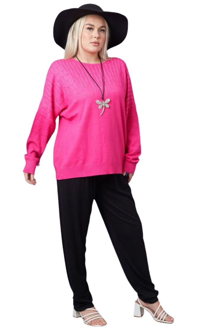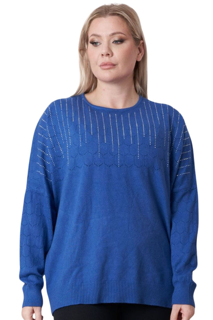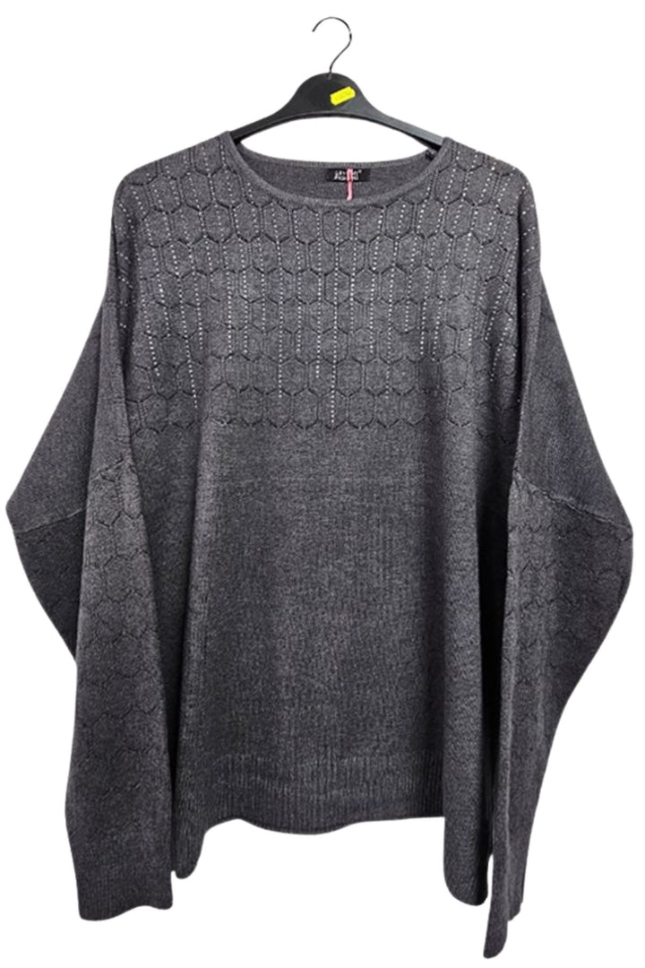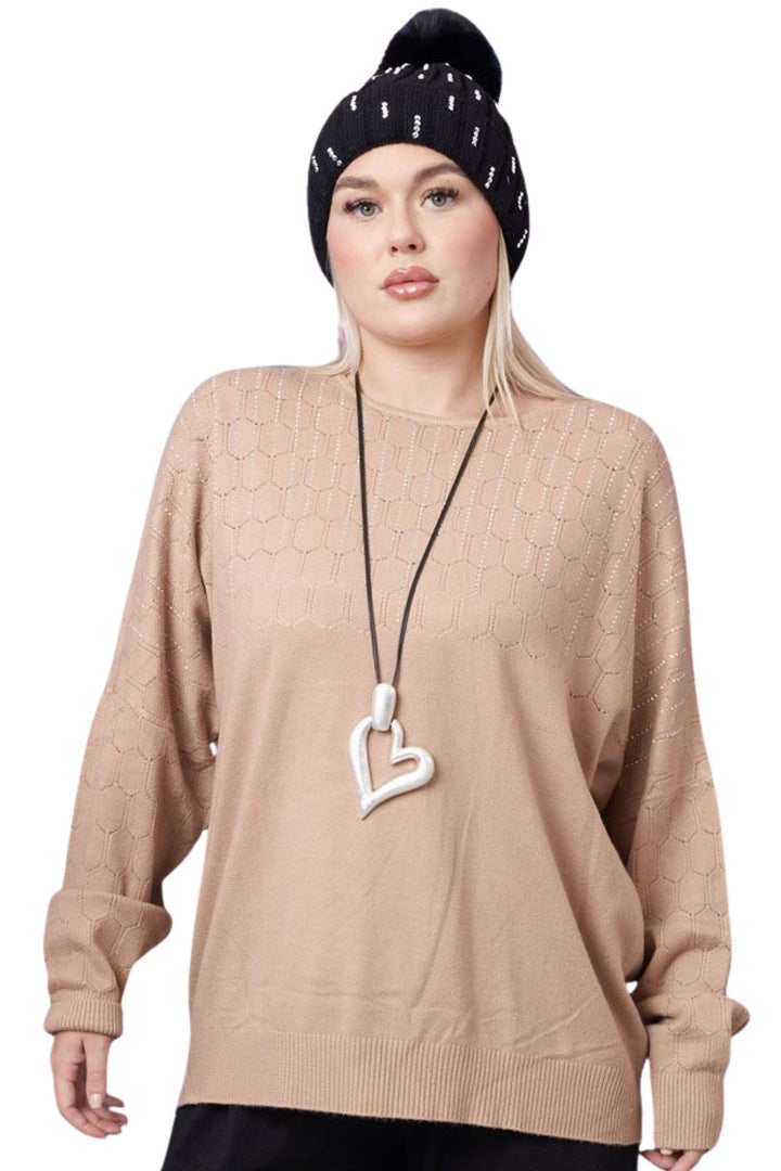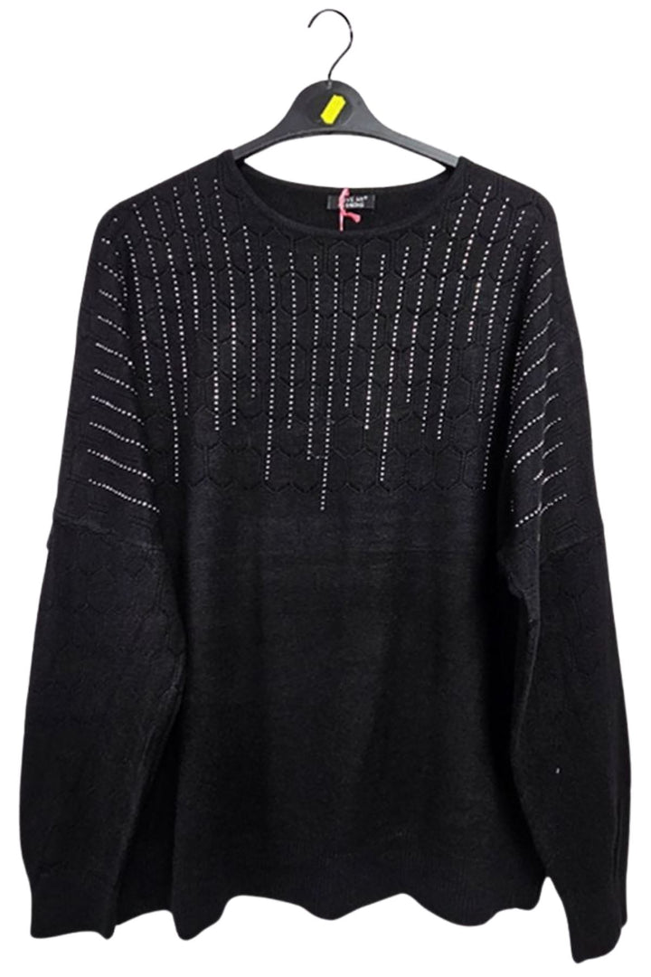 Elevate your autumn winter wardrobe with our diamante embellished long-sleeve top. Crafted from a soft feel material, this top provides the warmth and comfort you need for battling the cooler months. Its diamante, and cutwork detailing adds a touch of elegance to the piece, making it perfect for both casual, and stylish wear. Designed to create an oversized fit, it produces a comfortable and relaxed look, with additional ribbed hems on the sleeves and waist to produce a flattering finish.