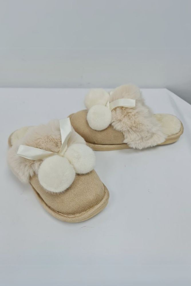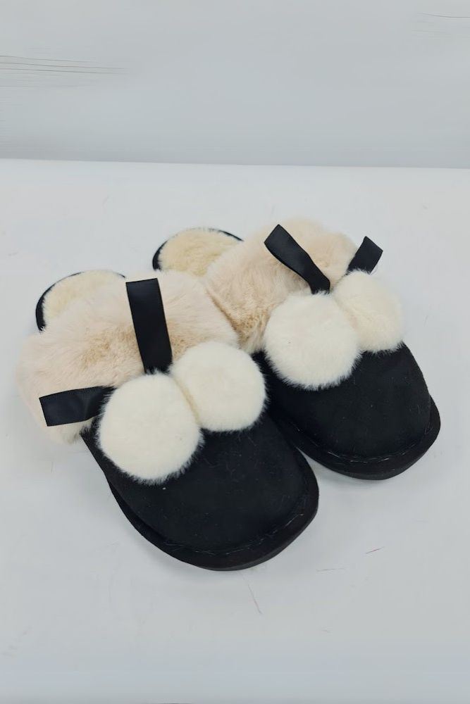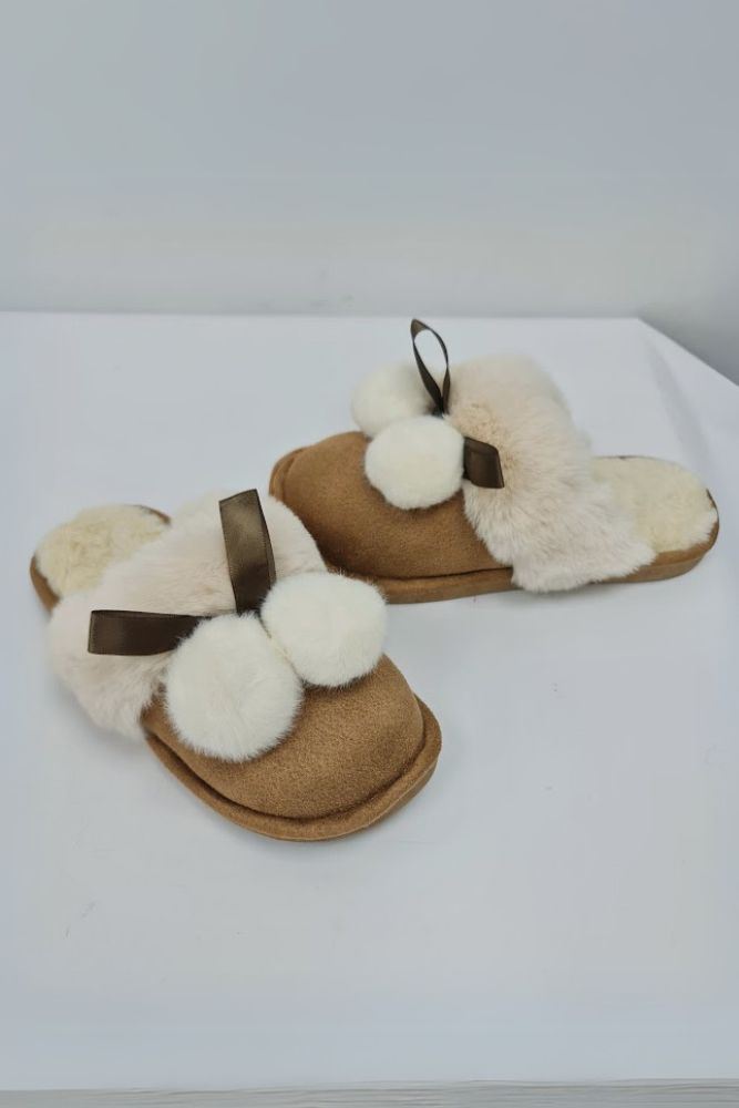 Step into luxury this autumn-winter with these faux fur pom pom mule slippers, designed for ultimate comfort and style. The soft faux fur lining cradles your feet in warmth, making them perfect for chilly evenings at home. A delightful pom pom detail adds a playful touch to their casual elegance, elevating your loungewear game. The slip-on mule design ensures effortless wear, while the cushioned insole provides all-day comfort. These slippers feature a durable, non-slip sole, ideal for indoor relaxation or light outdoor use. Their versatile style pairs seamlessly with cozy pajamas or a plush robe, making them a seasonal favorite. Whether you’re unwinding by the fire or sipping a morning coffee, these comfy slippers promise warmth and a touch of whimsy. Treat yourself or gift them to someone special for a perfect blend of comfort and charm.