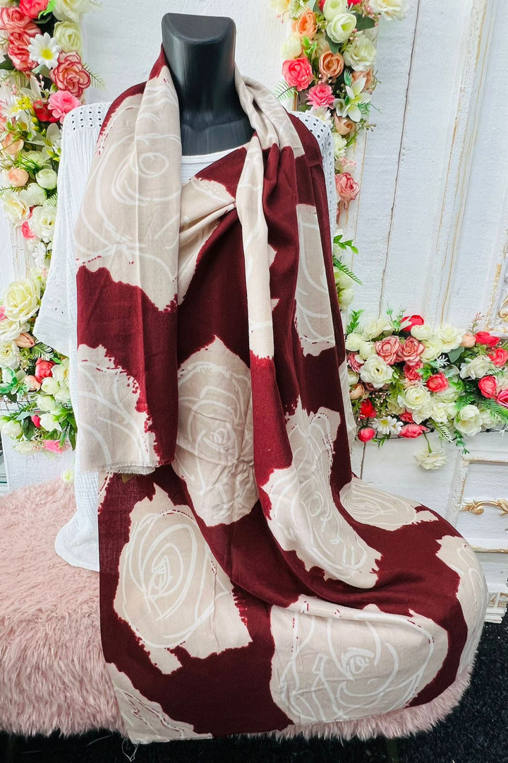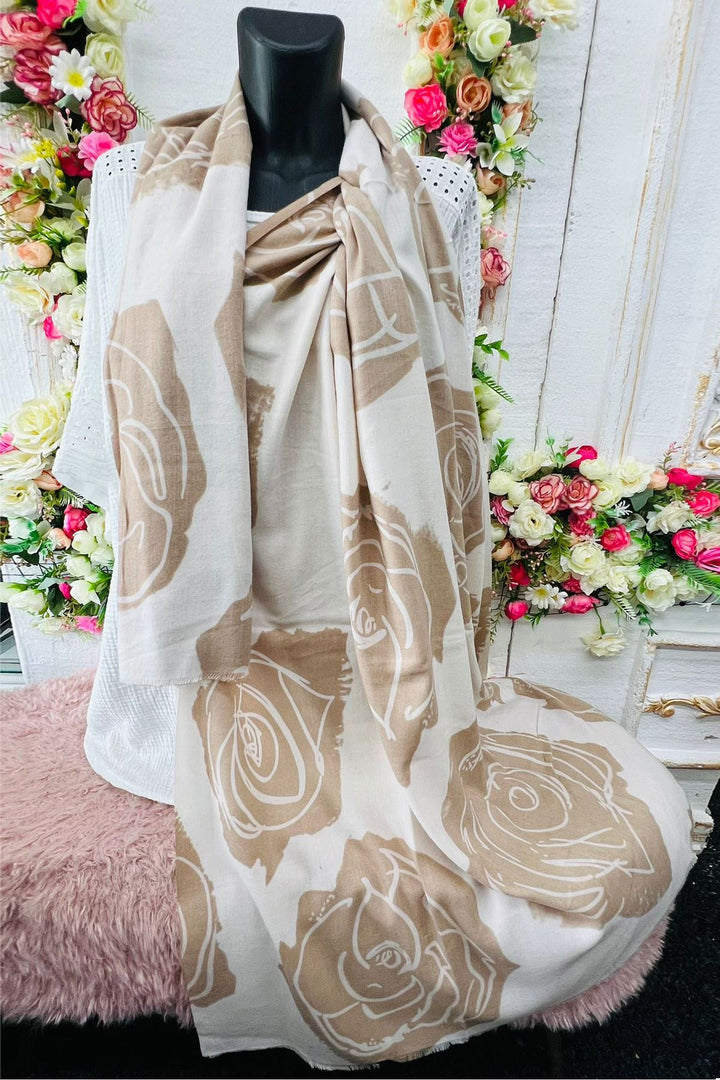 Elevate your everyday style with this elegant Beige & White Abstract Floral Print Scarf. Crafted from a soft, lightweight fabric, it offers effortless draping and a smooth touch against the skin. The artistic rose pattern in soothing beige tones adds a modern yet timeless appeal, making it the perfect accessory to complement both casual and formal outfits. Ideal for year-round wear, this versatile scarf can be styled as a shawl, neck wrap, or even a headscarf. Whether you're dressing up for brunch, travel, or an evening out, this piece adds sophistication and charm to any look. A must-have addition for fashion-forward women who appreciate subtle elegance and comfort.
