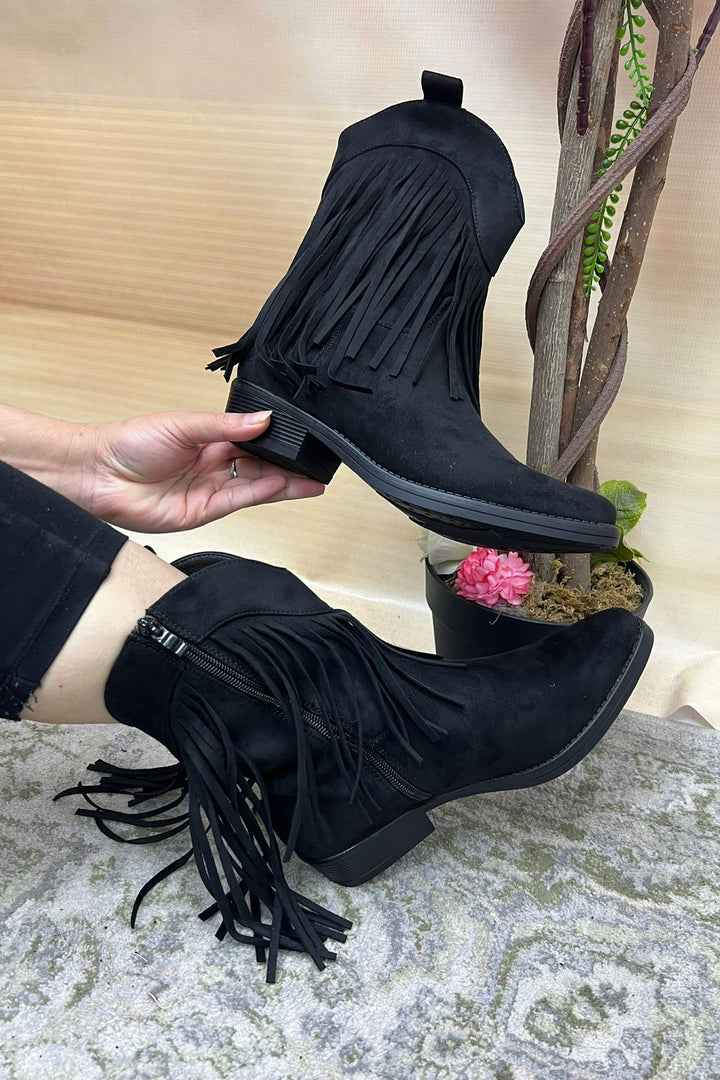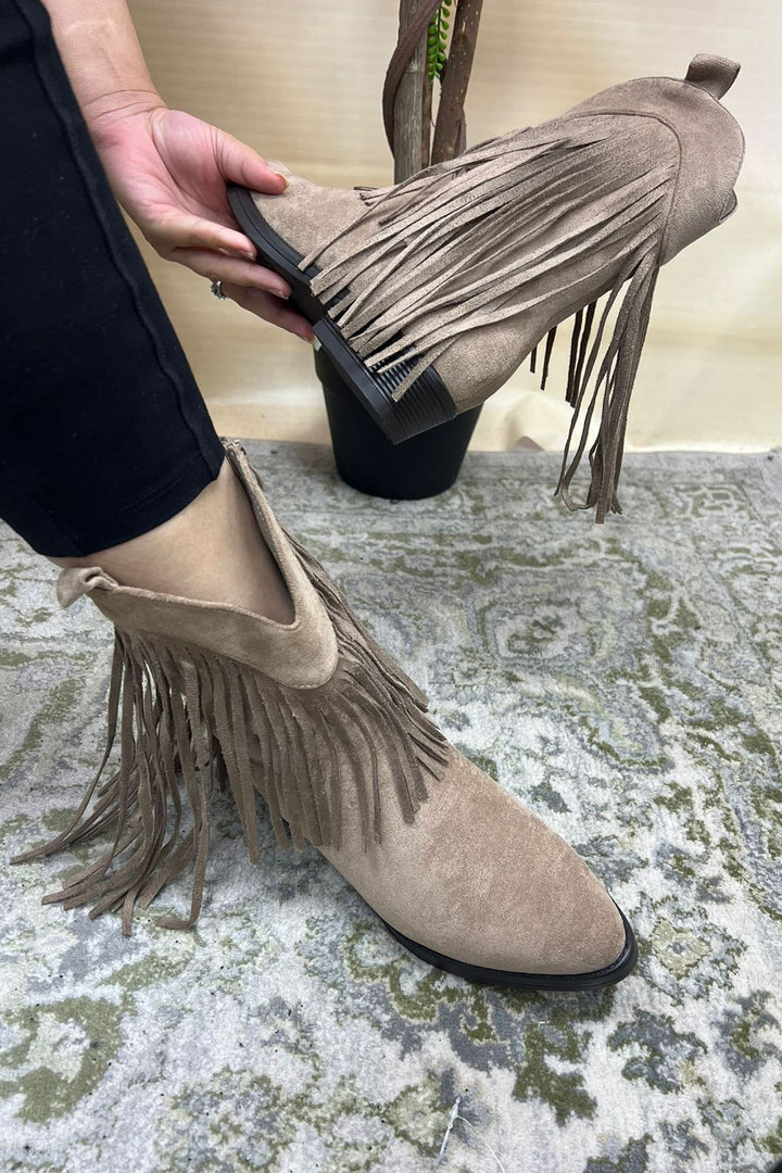 Step into effortless boho-chic style with these Women’s Western Fringe Ankle Boots. Made from soft suede-effect material, these ankle boots feature playful fringe detailing along the sides, capturing the essence of western-inspired fashion. Designed with a comfortable block heel and an easy side zipper, they offer both style and convenience. The neutral tone makes them easy to pair with dresses, jeans, or skirts for a versatile all-season look. Perfect for festivals, casual outings, or adding a statement touch to your everyday wear, these boots combine comfort, trend, and personality in one must-have design.