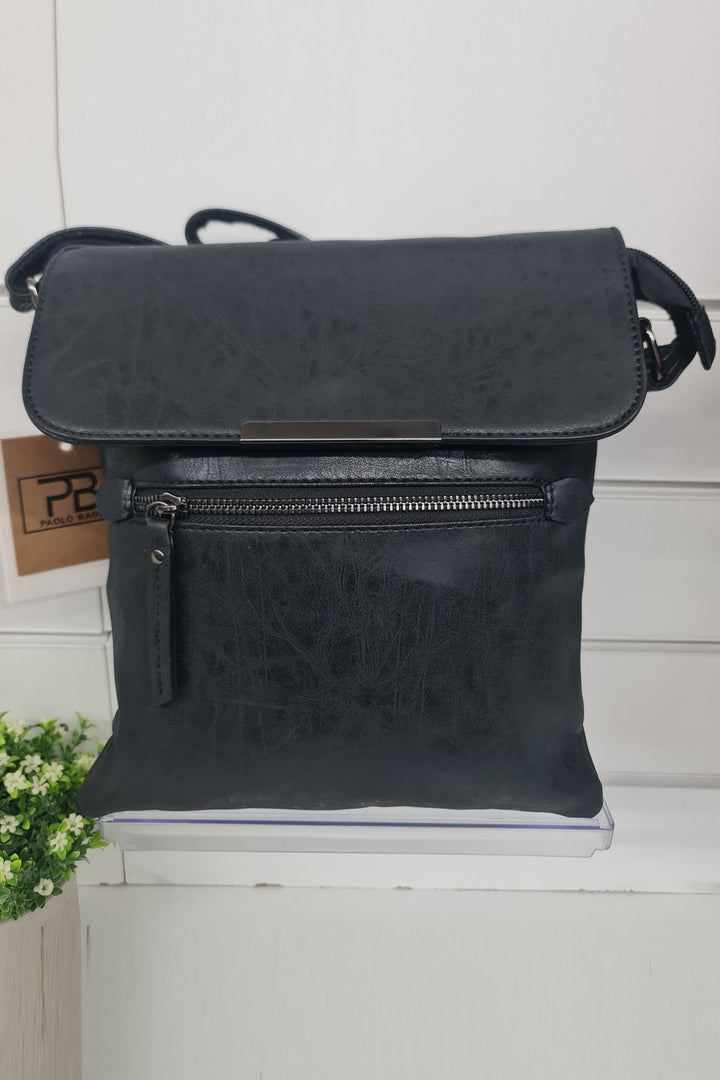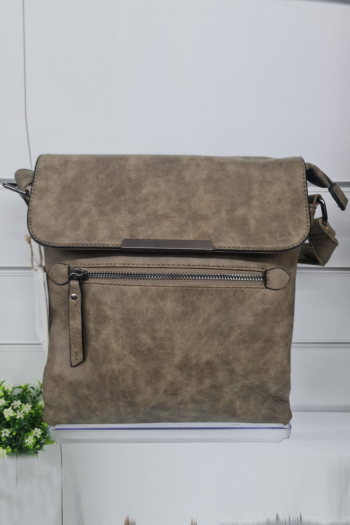 Elevate your everyday style with this sleek and structured crossbody messenger bag. Designed in a distressed faux leather finish with a vintage-inspired texture, this bag combines functionality with understated charm. It features a fold-over flap secured with a sleek metallic bar detail, adding a modern touch to its classic look. The exterior zippered pocket offers easy access to essentials, while the spacious interior keeps your items organized. With its adjustable strap, this versatile bag can be worn over the shoulder or across the body—perfect for casual outings, travel, or daily commutes. A subtle yet stylish choice that complements both men’s and women’s wardrobes effortlessly.