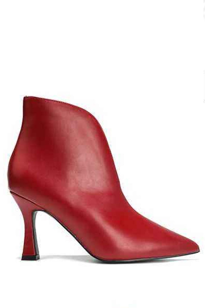 Make a bold fashion statement with these women’s red pointed toe ankle boots — the perfect blend of elegance, edge, and confidence. Crafted from smooth faux leather, these booties feature a sleek, sculpted silhouette with a deep V-cut front for a flattering and modern look. The pointed toe elongates the legs, while the slim stiletto heel adds a graceful lift for day-to-night appeal. Designed with a soft inner lining and cushioned insole, they provide lasting comfort without compromising on style. Ideal for pairing with dresses, skirts, or skinny jeans, these red high heel boots elevate any outfit — perfect for parties, special occasions, or chic streetwear fashion. Turn heads effortlessly with every step in these timeless, must-have ankle boots.