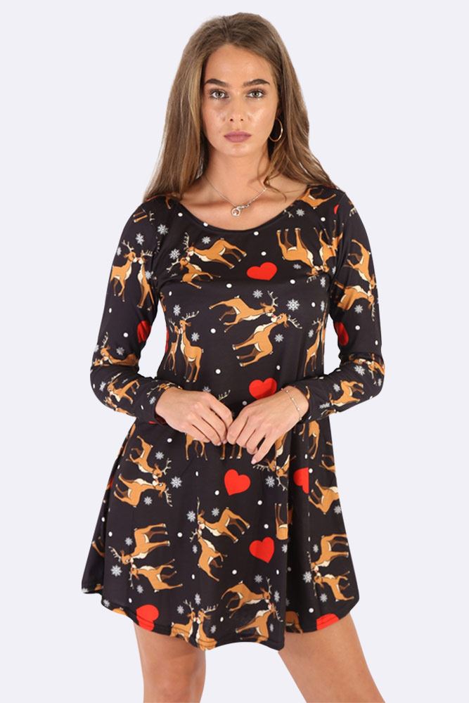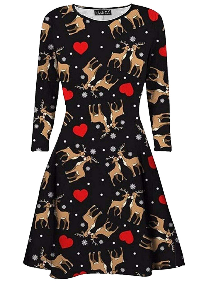 Get your ideal flared swing dress for this XMAS Featured long sleeve crew neck multiple xmas prints for casual wear in xmas evening party. It is made of very soft comfortable material.