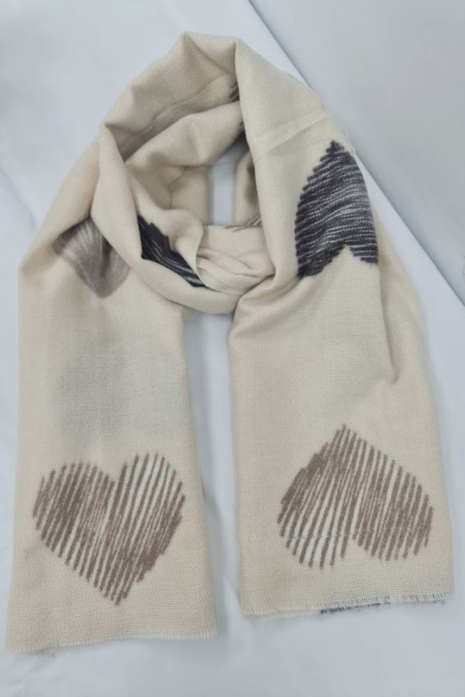 Wrap yourself in warmth and charm with our viscose heart print scarf, a perfect addition to your autumn and winter wardrobe. Designed with a delicate heart pattern, this scarf exudes casual elegance, making it a versatile accessory for any outfit. Crafted from soft, lightweight viscose, it offers a luxurious feel against your skin while providing just the right amount of warmth. The scarf’s breathable fabric ensures comfort throughout the day, whether you're heading to a casual outing or layering up for a chilly walk. Its timeless design pairs effortlessly with jackets, coats, or sweaters, adding a playful yet sophisticated touch to your look. A must-have for women who appreciate both style and comfort, this scarf is your go-to accessory for the colder seasons.