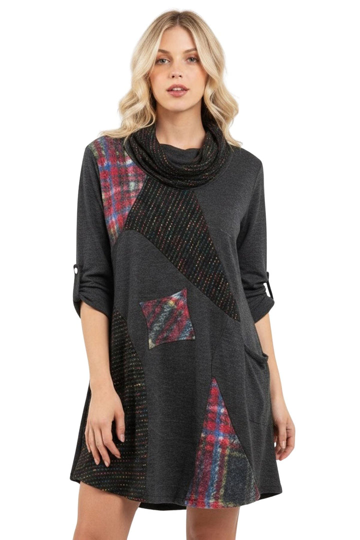 - Asymmetrical Hemline With Patchwork Pattern (Relaxed Drape)