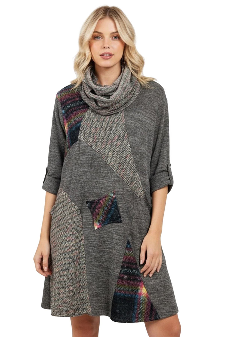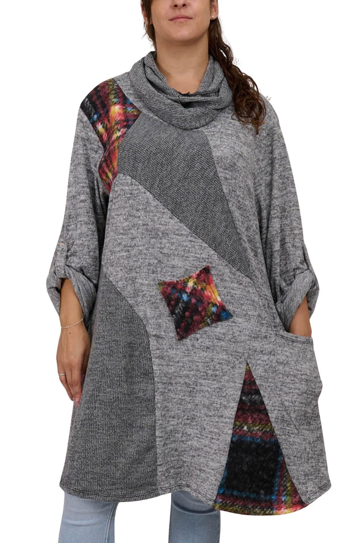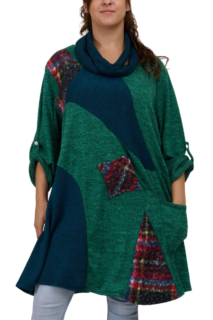 Elevate your autumn-winter wardrobe with this Italian-inspired top for women. Crafted from luxurious Viscose, it features a unique Multi Patch Work Pattern that adds a touch of artistic flair. The Round Neck and Long Sleeve design ensure warmth, while the Plus Size, Loose Fit guarantees comfort. Ideal for casual outings, it comes with a matching scarf and handy pockets.