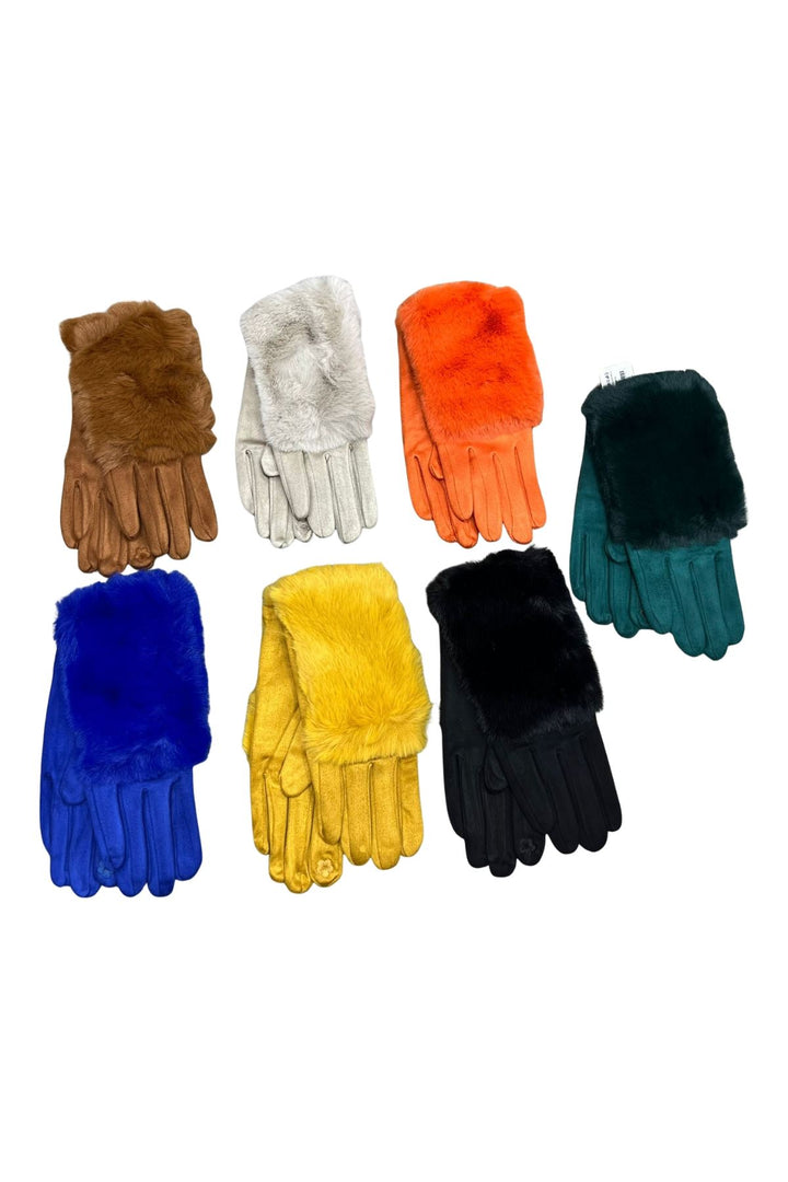 Stay warm in style with these cozy and colorful winter gloves, finished with an ultra-soft faux fur cuff. Made with a flexible suede-touch outer and a warm fleece-like inner lining, these gloves are perfect for chilly days. Designed to combine elegance with everyday comfort, they feature a simple silhouette that makes them ideal for both casual and dressy winter wear. Available in a wide range of bold and neutral tones including royal blue, mustard yellow, emerald green, black, orange, beige, and coffee brown—these gloves offer the perfect splash of color for any winter wardrobe.