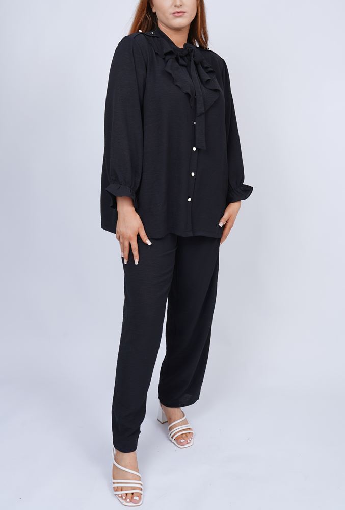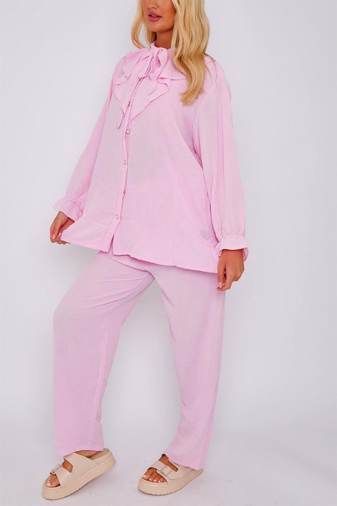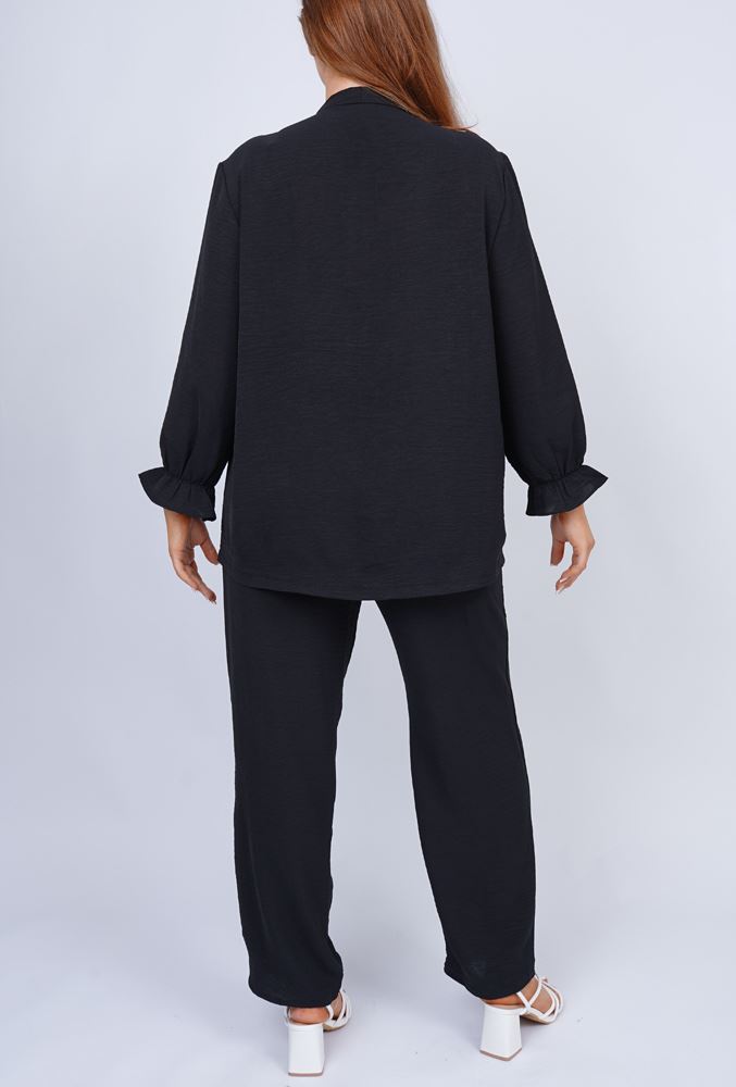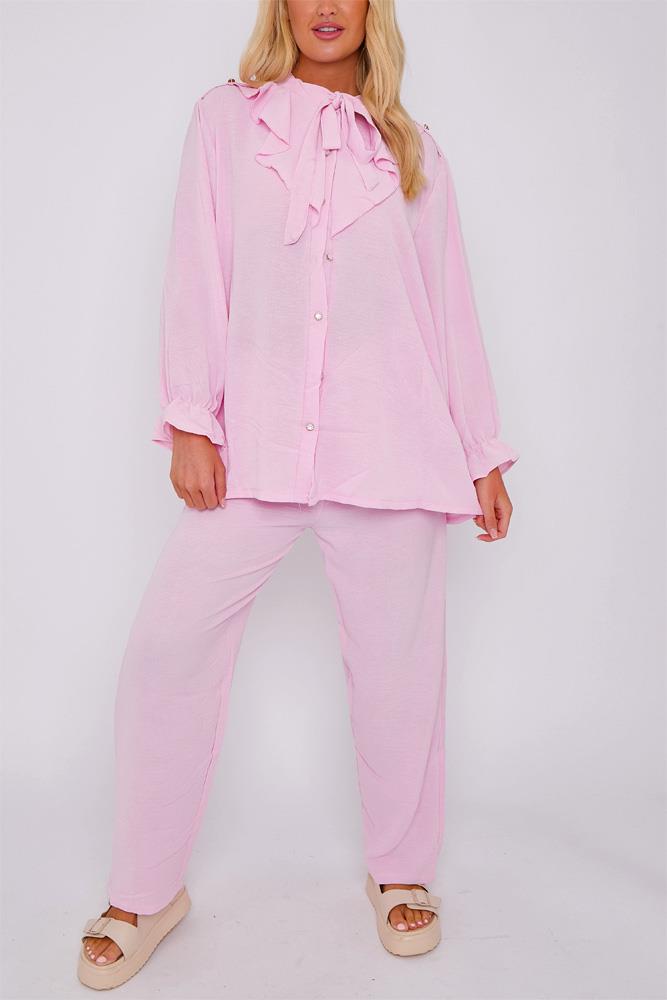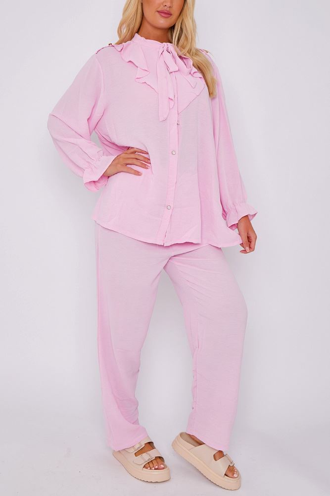 Plain Front Ruffle Button Up Elasticated Waist Co-Ord Set