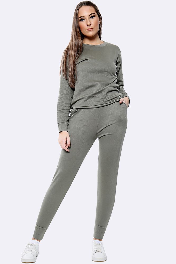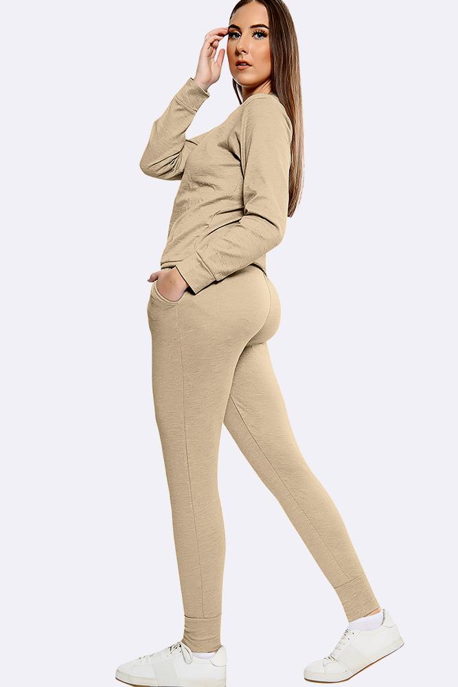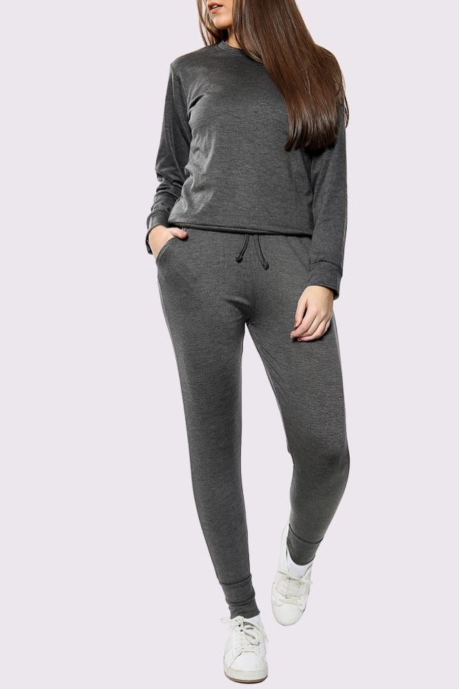 PLAIN LONG SLEEVE TOP LOUNGWEAR TRACKSUIT