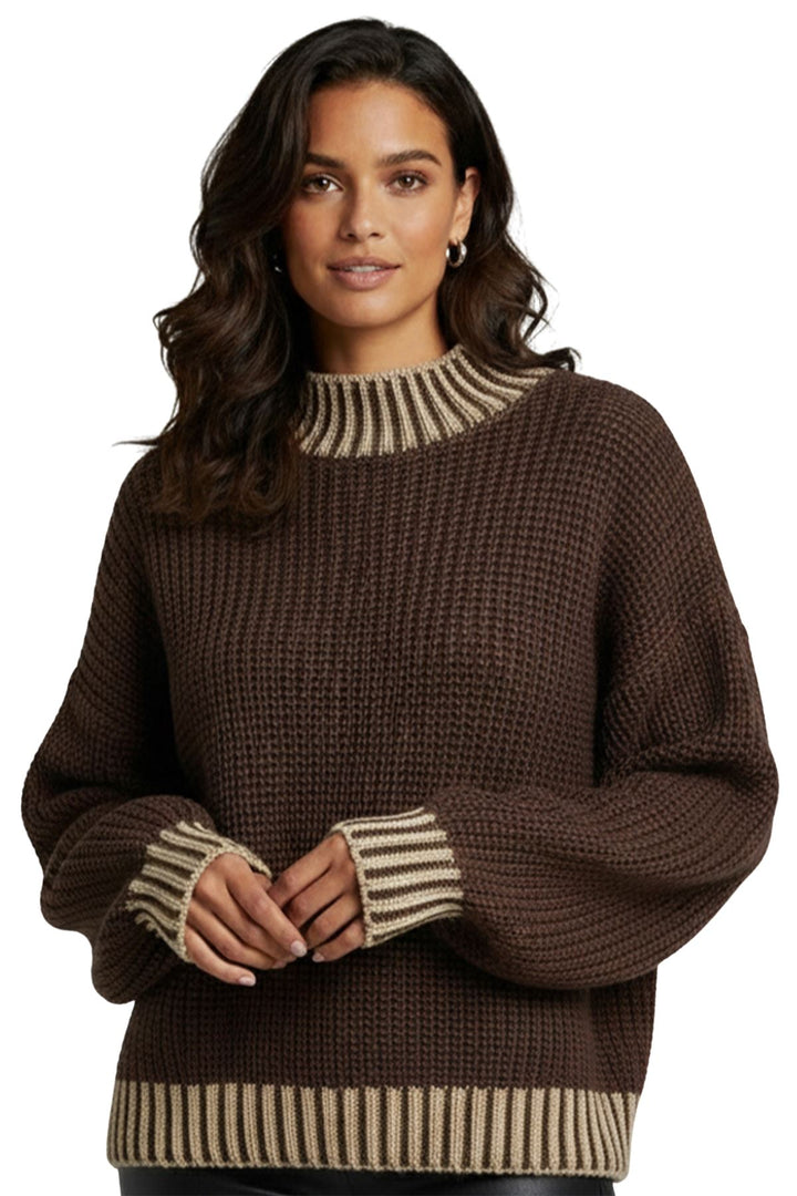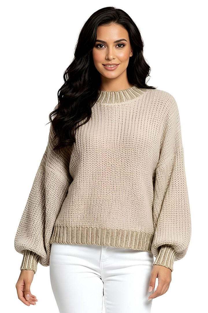 Stay cozy and effortlessly stylish this season with this Italian Acrylic Balloon Sleeve Jumper. Crafted from soft, comfortable knit fabric, it features metallic gold ribbed detailing along the neckline, cuffs, and hemline — adding a subtle touch of shimmer. The crew neckline and dropped shoulders create a relaxed silhouette, while the ribbed trim enhances structure and warmth. With its straight hem and balloon-style long sleeves, this jumper offers a perfect blend of comfort and chic appeal. Designed in a plain colour for versatile styling, it pairs beautifully with jeans, skirts, or trousers. Ideal for winter layering, festive gatherings, travel, or evening outings, this plus-size knitwear piece ensures both warmth and elegance. The soft textured knit and gold thread accents make it a timeless addition to any wardrobe.