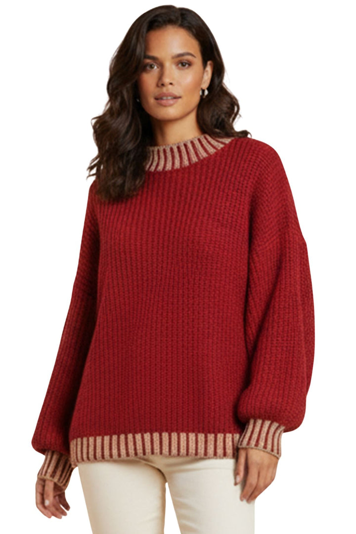 Plain Ribbed Trim Balloon Sleeve Knit Jumper