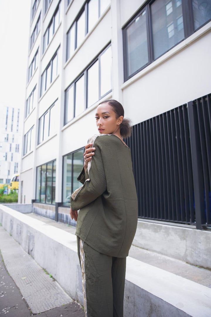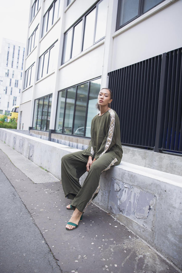 Elevate your casual wardrobe with this chic polyester co-ord set, designed for plus-size women who seek both comfort and style. The plain, round neck top with long sleeves offers a classic and timeless look, perfect for spring and summer days. The loose fit ensures maximum comfort and breathability, making it ideal for warm weather. The wide-leg trousers feature an open hem and are adorned with side sequin lace, adding a touch of sparkle and elegance. The drawstring waistband provides a customizable fit, while the practical pockets enhance functionality. This versatile co-ord set combines style and comfort, making it a must-have for casual outings.