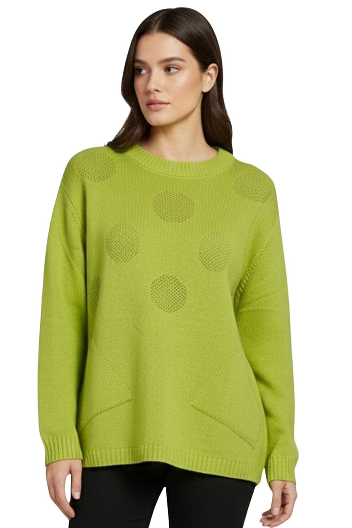 - Solid Colour With Textured Polka Dot Knit On Front Or Vertical Knit Stripe Detail On Back And Some Detailing On Shoulder
