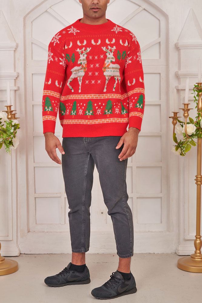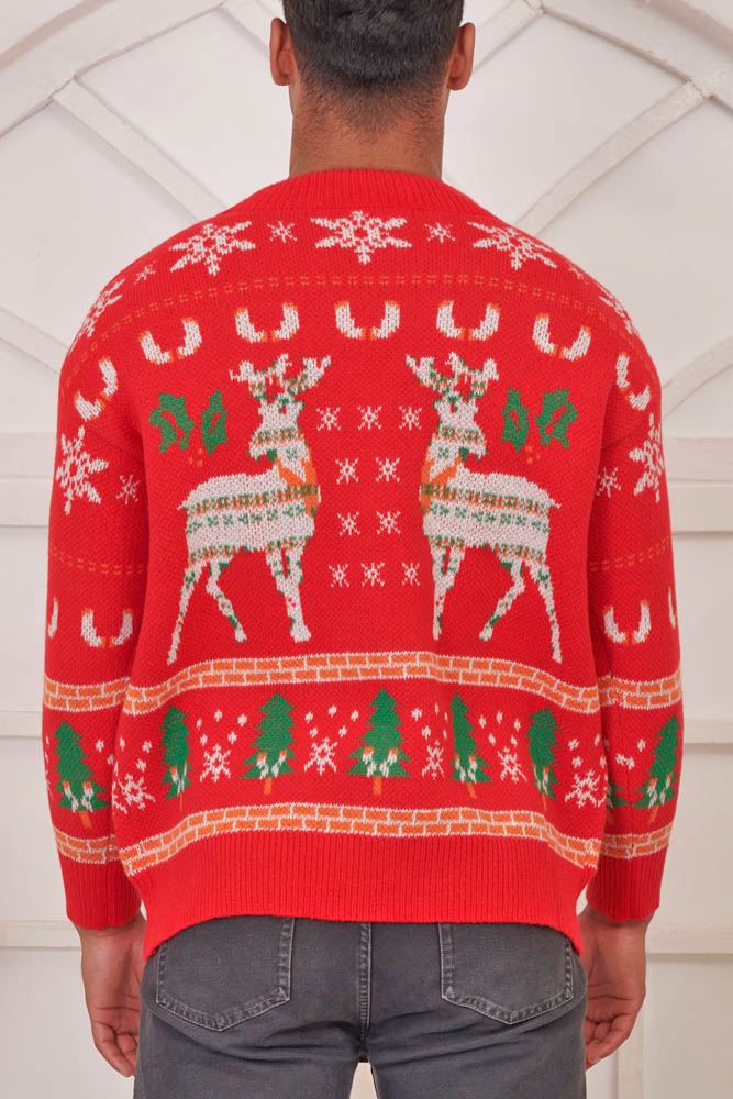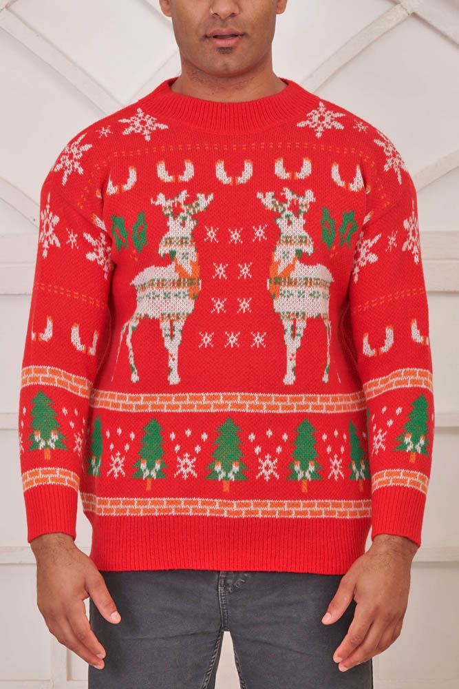 Reindeer Snowflake Pattern Xmas Ribbed Jumper