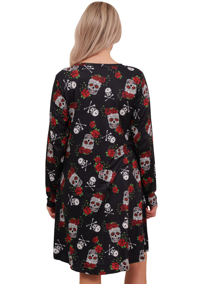 Rose Skull And Bones Print Halloween Dress