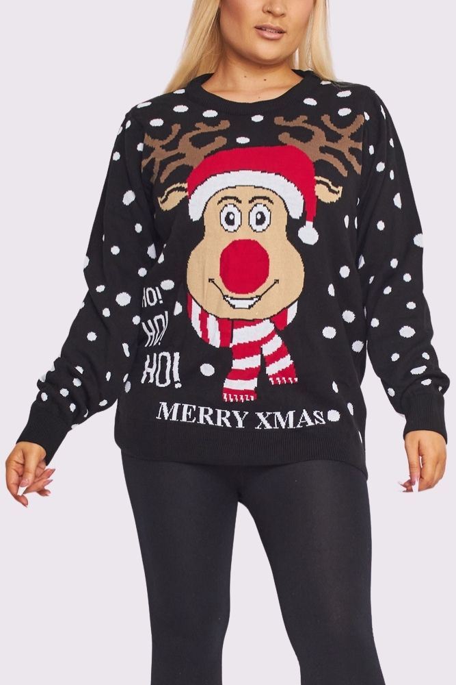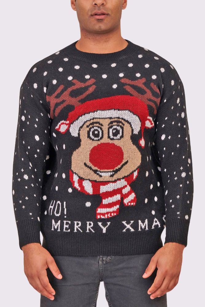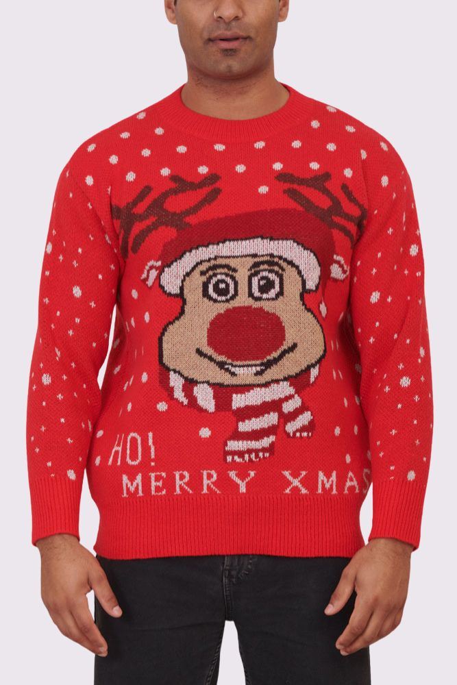 Rudolf Reindeer Pattern XMAS Ribbed Jumper