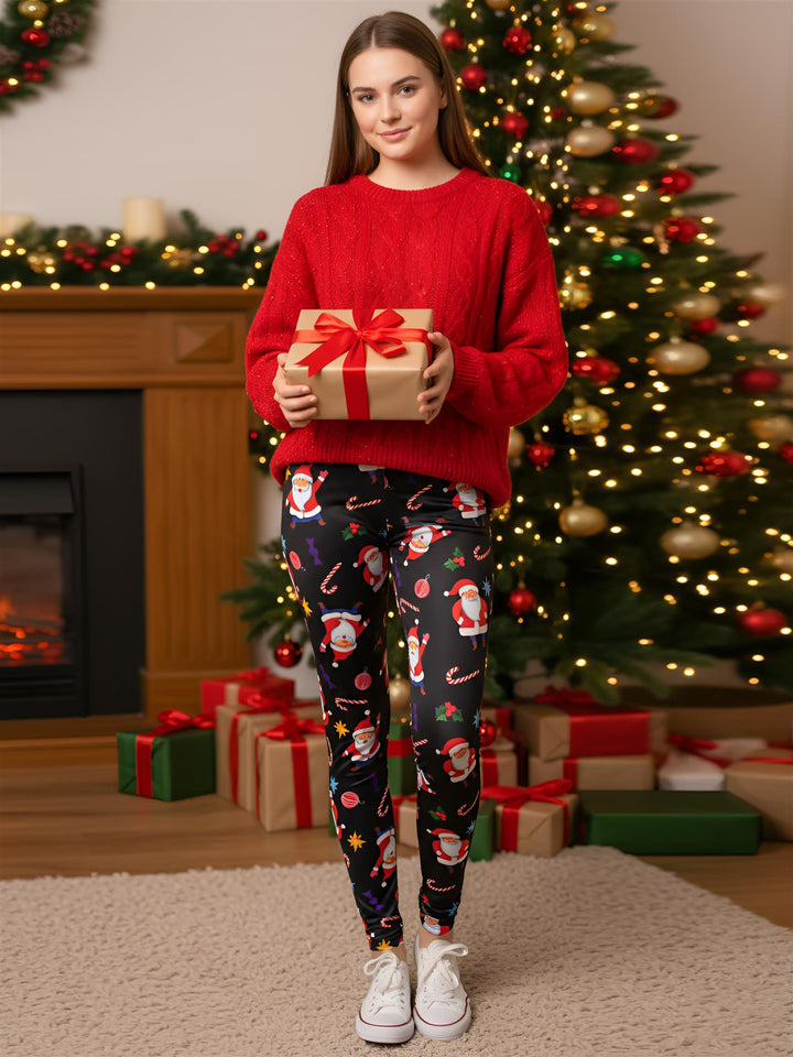 These trendy leggings are the perfect piece for a xmas outfit. Whatever the occasion may it be exercise relaxing at home or even dressed up with heels for a day out. The elasticated material creates a flattering silhouette. These leggings are perfect for versatility a true wardrobe staple. How will you style them?