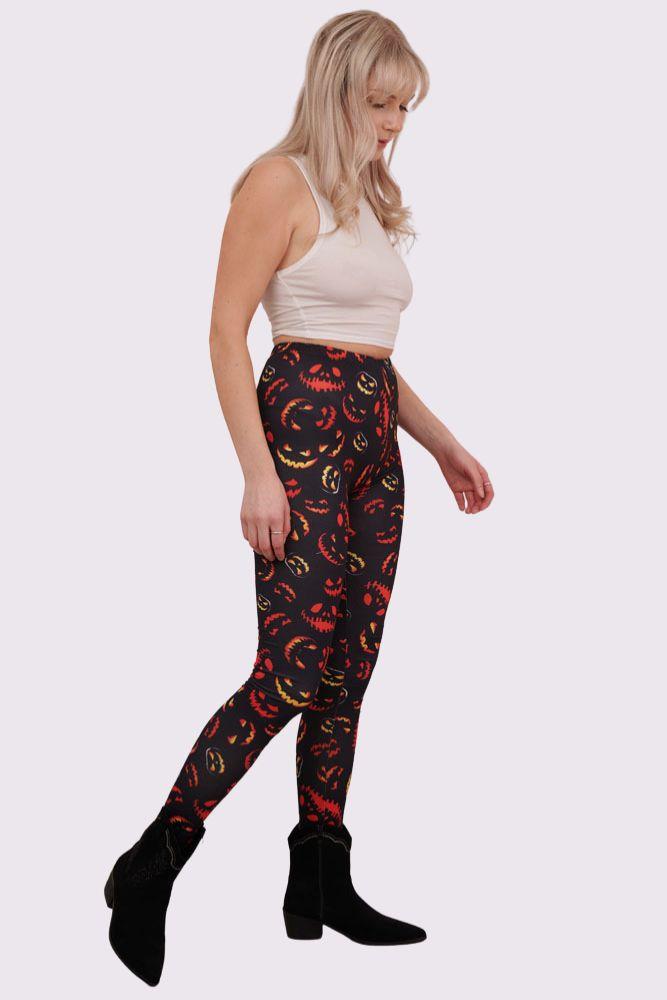 These trendy leggings are the perfect piece for a halloween outfit. Whatever the occasion may it be exercise relaxing at home or even dressed up with heels for a day out. The elasticated material creates a flattering silhouette. These leggings are perfect for versatility a true wardrobe staple. How will you style them?