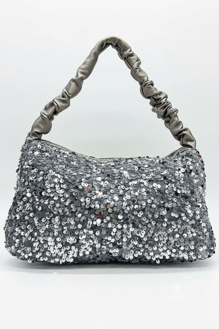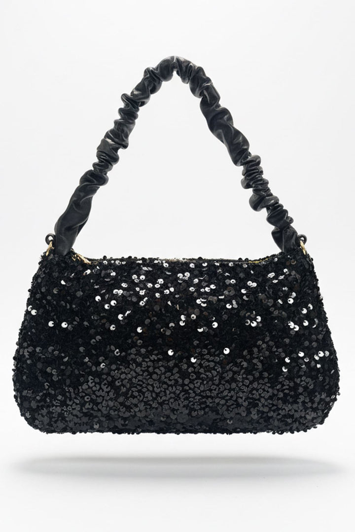 Shine bright with this Women’s Sequin Shoulder Bag, designed to elevate your evening and party looks. Featuring a stunning array of golden sequins that shimmer with every move, this bag brings glamour and sophistication to any outfit. The scrunch-style faux leather handle adds a trendy touch while ensuring comfortable carrying. Its compact yet practical size makes it perfect for holding essentials like your phone, wallet, and makeup. Whether for weddings, parties, or festive nights out, this sparkling handbag is your go-to statement accessory.