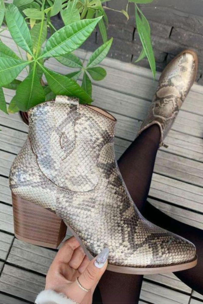 Step up your autumn and winter wardrobe with these striking snake pattern block heel ankle boots, designed for women who love bold yet casual footwear. The snake print adds a touch of wild elegance, making these boots perfect for pairing with jeans, leggings, or cozy dresses. Featuring a sturdy block heel, they provide both style and comfort for all-day wear. The convenient side zip ensures easy on-and-off access, making them as practical as they are chic. Crafted for cooler seasons, these ankle boots offer a sleek silhouette that complements both casual and semi-dressy outfits. Whether you're heading out for a day of shopping or a casual evening out, these boots are the ideal choice to elevate your look while staying comfortable. Durable and fashionable, they are a must-have addition to any autumn/winter footwear collection.