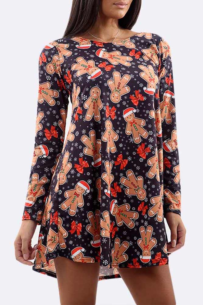Get your ideal flared swing dress for this XMAS Featured long sleeve crew neck multiple xmas prints for casual wear in xmas evening party. It is made of very soft comfortable material.
