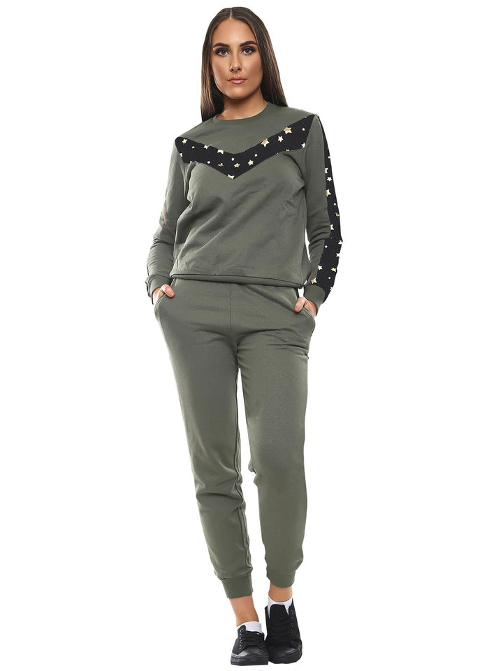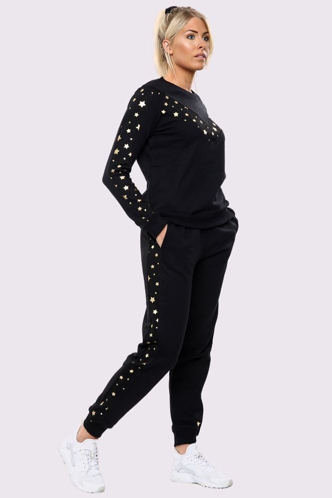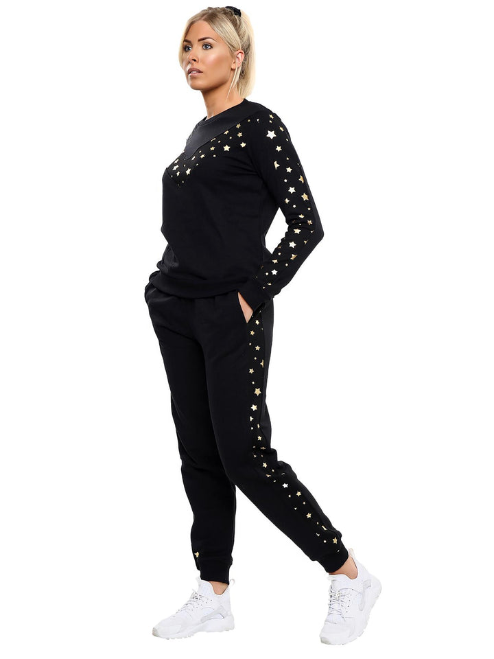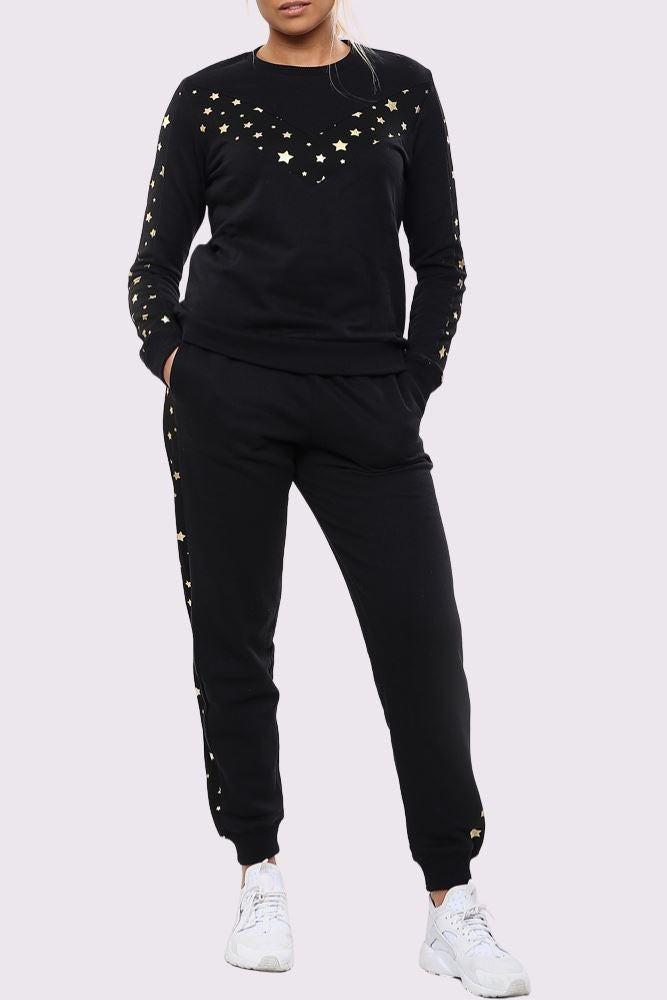 Style is all in the details. Assist your customers by restocking this gorgeous item. Features material - Star Print - Round Neck - Long Sleeve - Side Panel Loungwear Tracksuit. This garment is a must have any store this season.