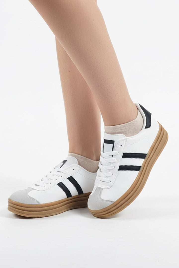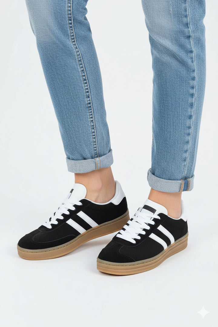 Step into effortless style with these chic women’s trainers. Featuring a versatile stripe detail, they add a touch of modern flair to your casual wardrobe. Perfect for the autumn and winter seasons, these trainers are designed for both comfort and durability, making them ideal for everyday wear. The lace-up fastening ensures a secure fit, while the lightweight build keeps you moving with ease. Whether paired with jeans, leggings, or casual dresses, these trainers seamlessly blend practicality with trend-setting style. Elevate your footwear game and make these trainers your go-to choice for the season.