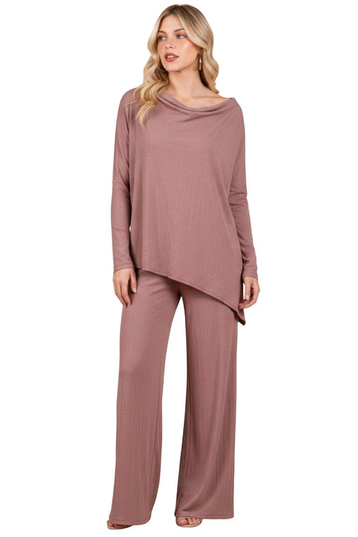 - Two Piece Set Long Sleeves Top And Wide Legs Trousers