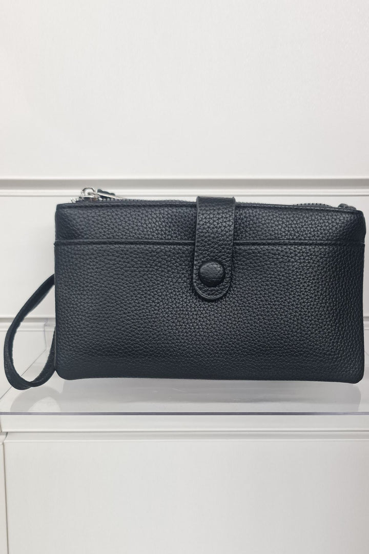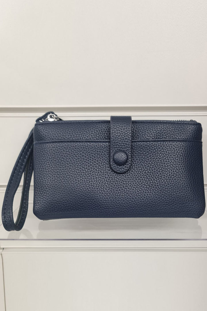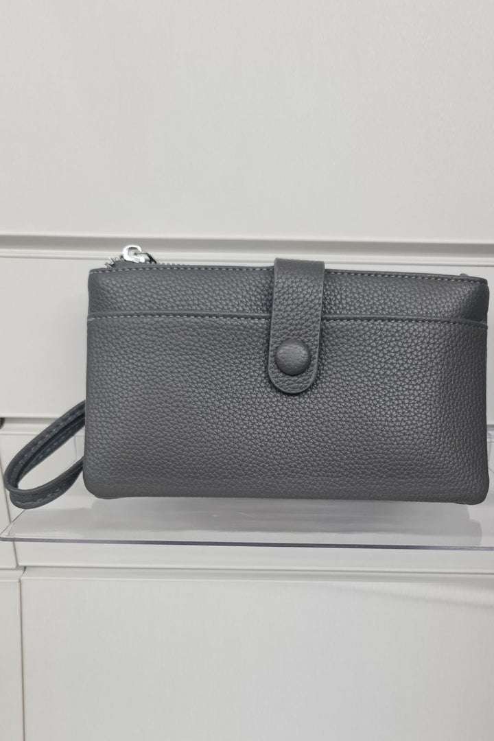 Elevate your everyday style with this sleek and functional metallic wristlet wallet, designed for women who value elegance and practicality. Crafted from high-quality faux leather with a shimmering textured finish, this wallet combines fashion with utility. The compact yet spacious structure offers multiple compartments to organize your cards, cash, and small essentials effortlessly. A secure snap closure flap adds an extra layer of protection, while the side zipper provides quick access to additional items. Complete with a matching wrist strap, it ensures ease of carrying whether you’re heading out for errands, travel, or a night out. Sophisticated in design and versatile in function, this metallic wallet is the perfect blend of shine and storage.