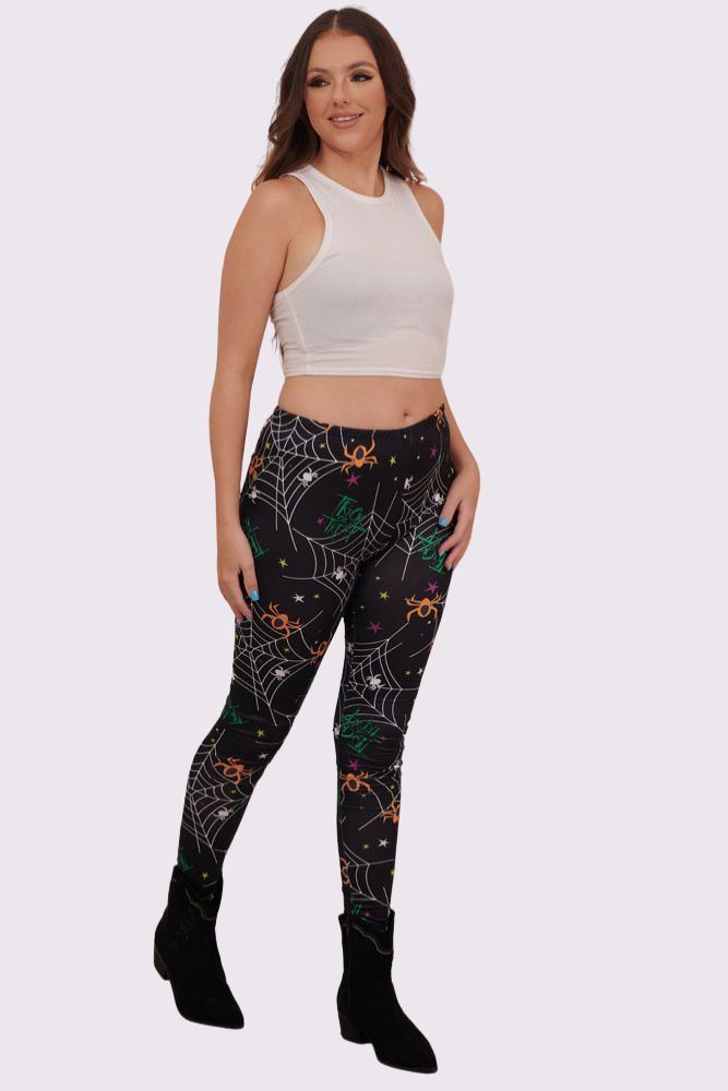 Trick Spider Print Halloween Leggings