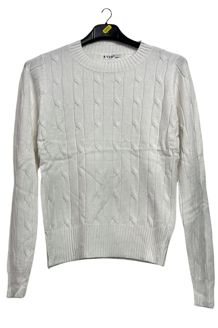 - Solid Colour With Twisted Rope Like Knit Design And Some Detailing On Shoulder
